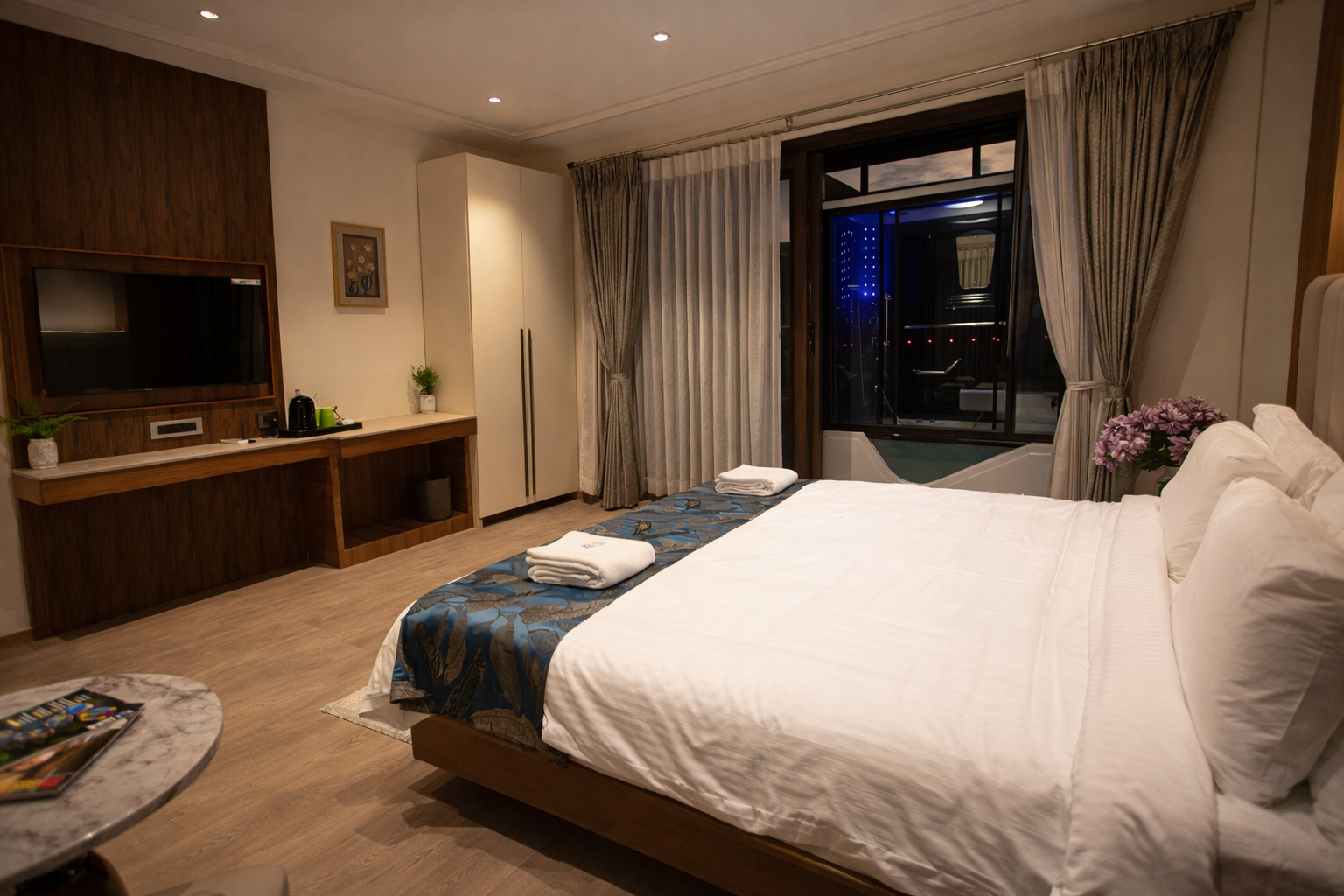 Starting from ₹0 ₹5999 per night including all day inclusive packageEnjoy a luxurious stay in our Jacuzzi Room, where comfort meets indulgence. Unwind in your private jacuzzi after a long day, surrounded by warm lighting and cozy interiors. Perfect for romantic escapes or self-care weekends, this room promises peace, privacy, and a truly soothing experience.